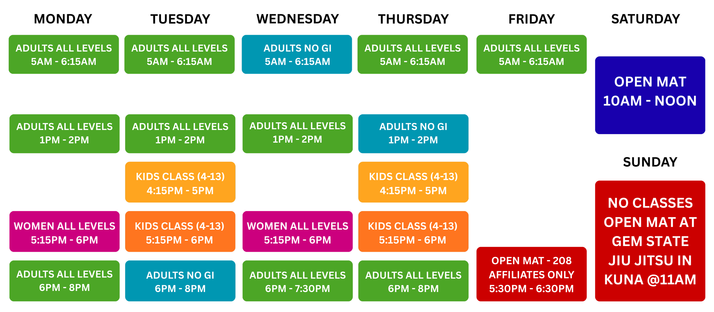 *Friday night Open Mat is for 208 affiliates schools only.